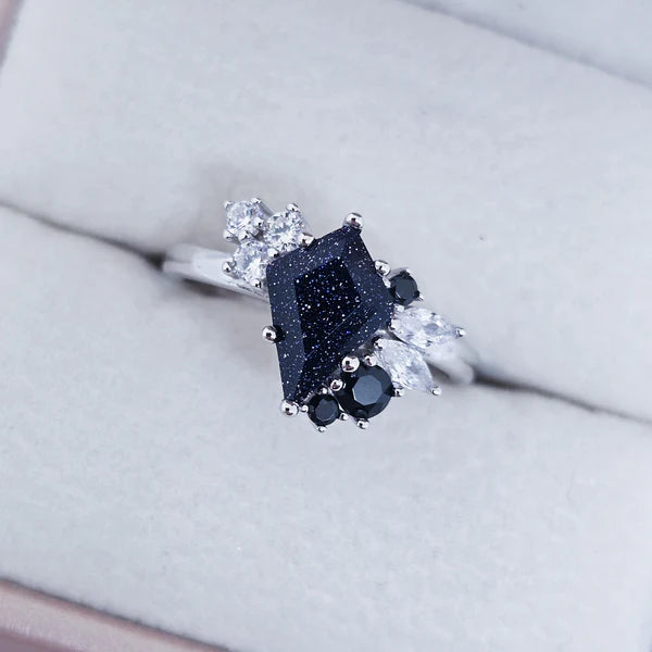 Celestial Sparkle Blue Sandstone Ring | Oval 925 Sterling Silver
