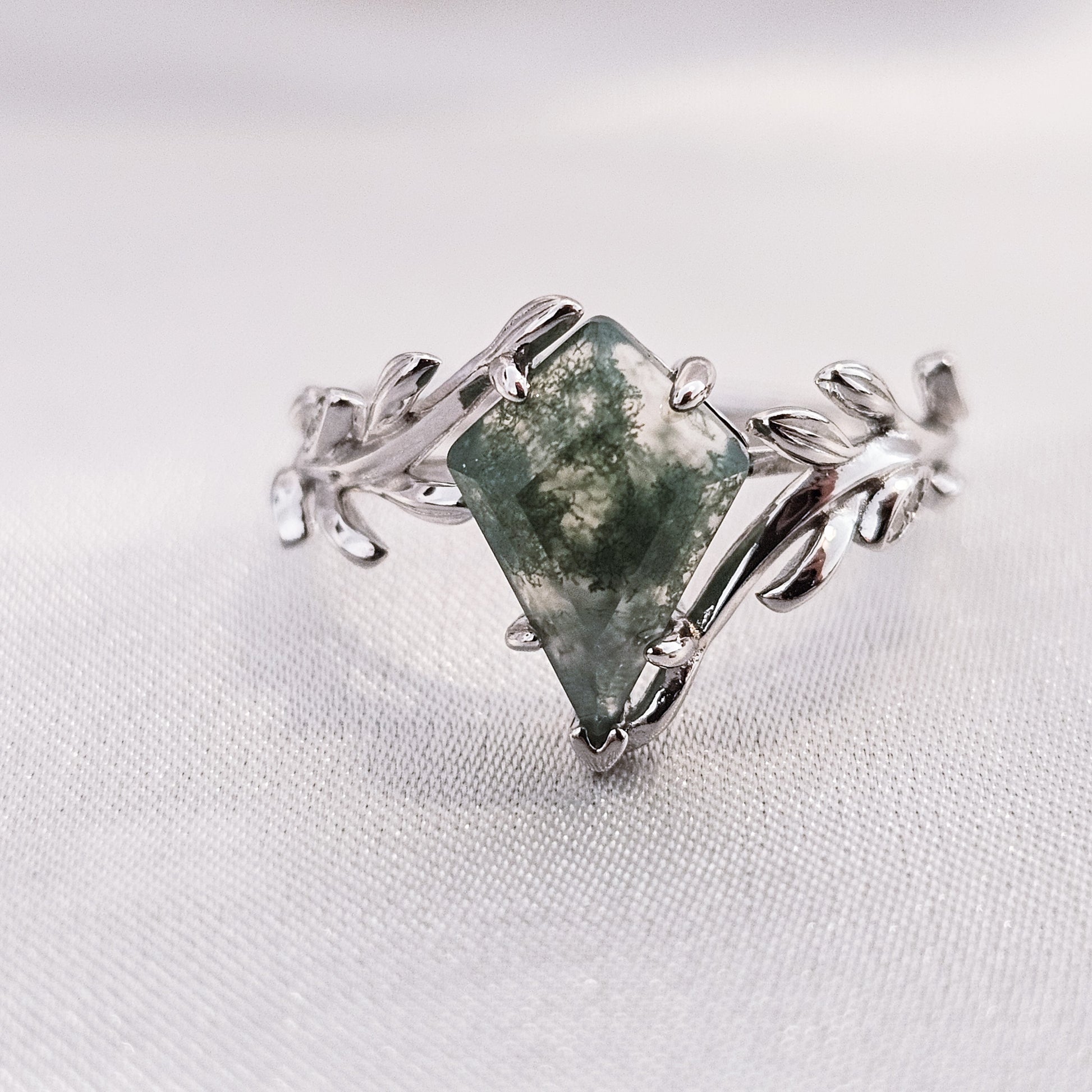 Bring the beauty of nature to your jewellery collection with the Olive Grove Moss Agate Ring. This unique piece features a genuine kite-cut moss agate gemstone, known for its natural green inclusions that resemble miniature landscapes and forest scenes. Every stone is completely one-of-a-kind, ensuring that no two rings are ever identical.