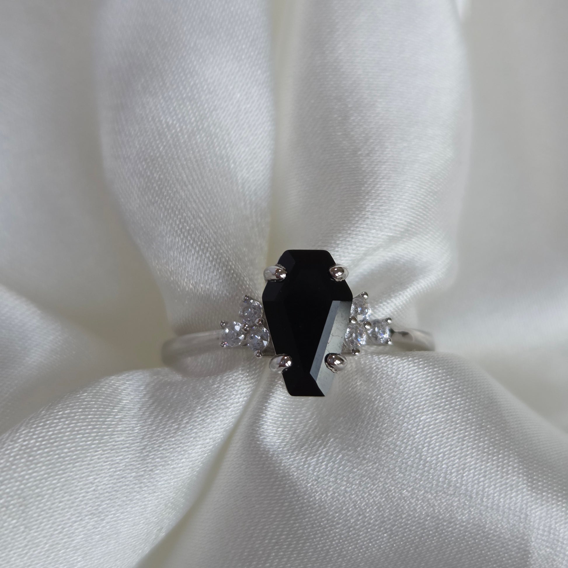 The deep black onyx symbolises strength, protection, and grounding energy, while its unique coffin-cut shape adds a bold, gothic-inspired twist. Balancing dark beauty with refined sophistication, it’s perfect for those drawn to alternative jewellery, modern minimalism, or mystical statement pieces.